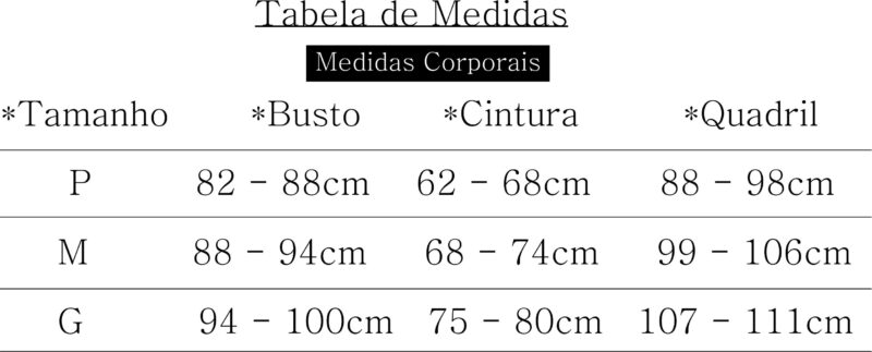 Medidas da Modelo – Tamanho P