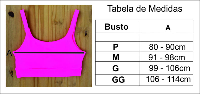 O Top Basic possui alta sustentação, conforto e praticidade, alças um pouco mais largas, possuem elástico para maior segurança e firmeza na hora da sua atividade física, abertura interna para bojo removível.