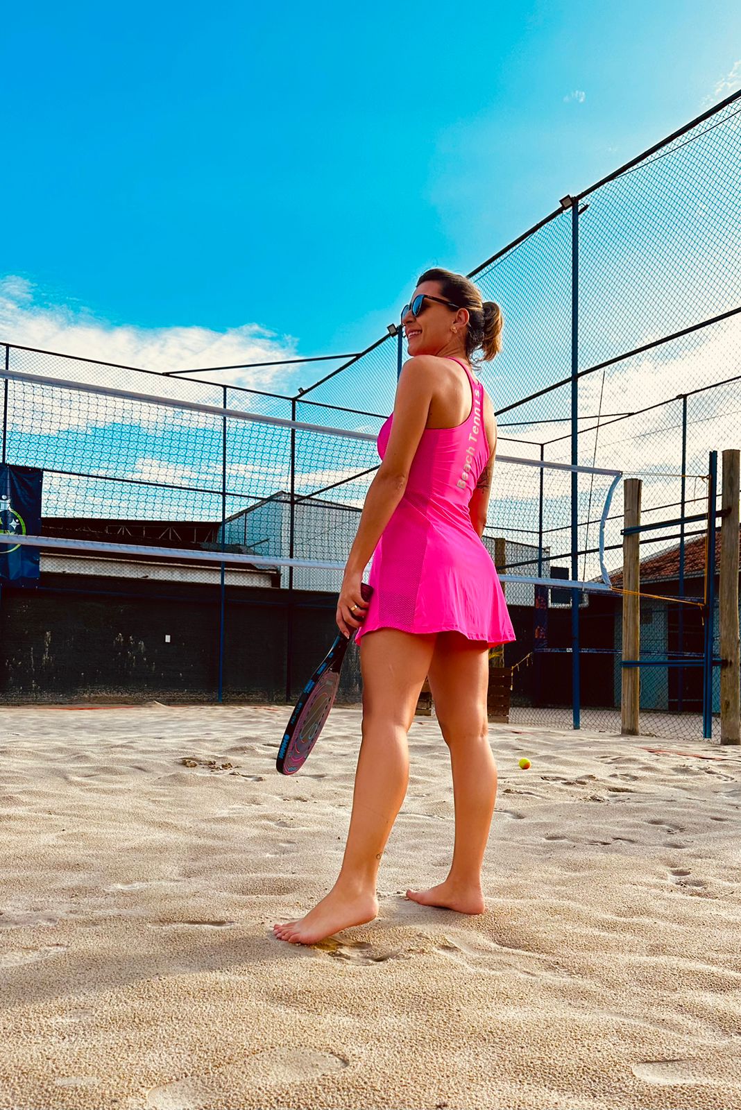 O Vestido Stephani Beach Tennis é ideal para Beach Tennis. Especialmente pensado para levar conforto, beleza e praticidade para praticar sua atividade física preferida. Acompanha short interno.