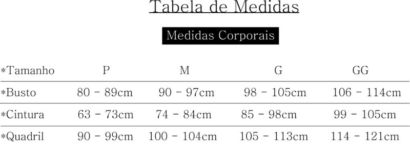 Tecido em Poliamida com Elastano, toque macio e leve, deixando com um visual moderno em uma única peça.